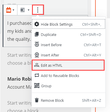 Ready-to-use testimonial blocks will insert a static testimonial section or slider on your website.