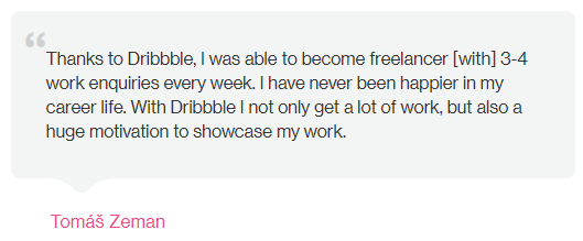 Dribble features a testimonial page that shows dozens of honest and straightforward user reviews. The vast majority of writers are grateful designers that found more work simply by being on the platform. It's clear that these testimonials are not altered or edited which inspires trust. Since they are also short and to the point, the viewers will read several of them and may be encouraged to sign up for this service themselves.